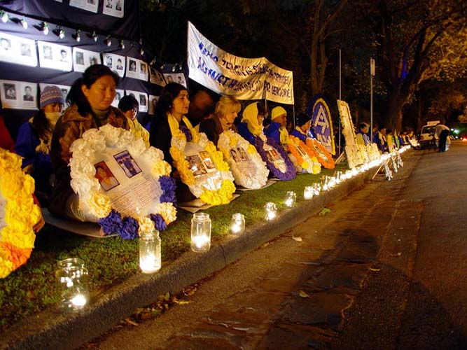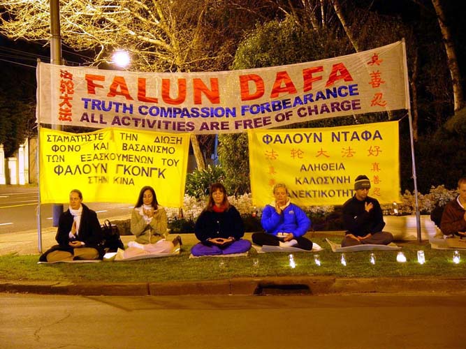 【明慧网2003年9月13日】2003年全澳法会即将于9月14日在墨尔本召开。9月12日下午,长途跋涉900公里风尘仆仆到达的“悉尼──墨尔本SOS紧急救援”车队完成了为期十天的跋涉,到达了他们本次车旅的终点站墨尔本中领馆,并与已先期赶到的来自澳洲各地的大法弟子一起在墨尔本中领馆前进行了大型烛光守夜活动,纪念中死去的同修,抗议虐杀,发正念,并由此拉开了为期三天的大型及法会的序幕。
