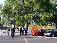 清晰醒目的图片也使等候红绿灯的司机都有足够的时间一目了然江××的恶行。虽然无法停下来签名,但相信每个看过江××群体灭绝罪图片展的人都会感到江××践踏人类基本人性的迫害行径必须立即制止的紧迫性。