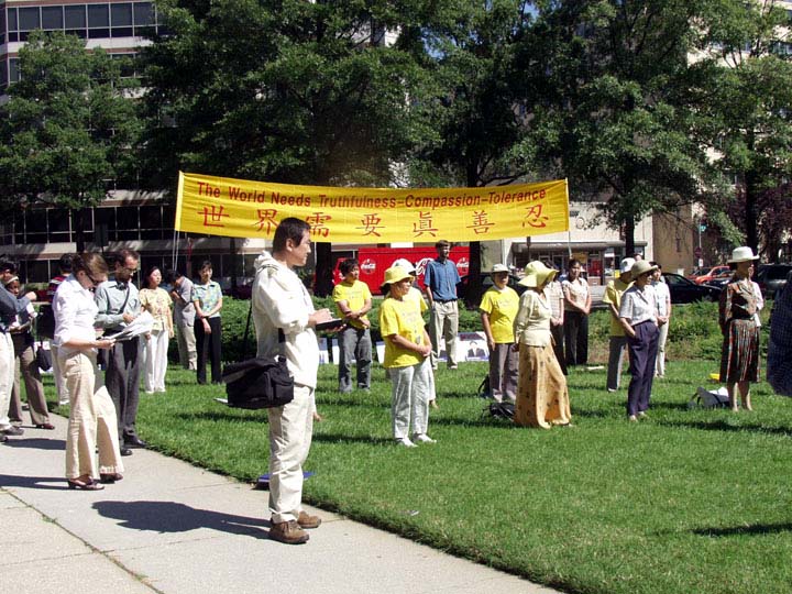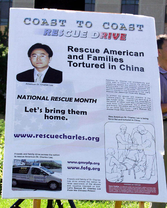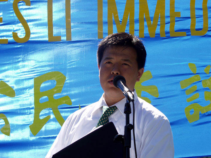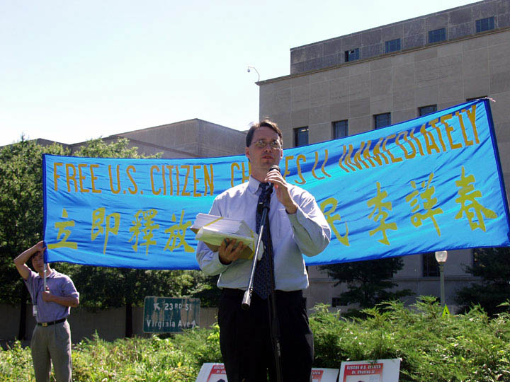 来自加州的法轮功学员布鲁斯主持会议。他说:“首先我想提出一个问题,为什么这些人,李祥春医生的朋友、家人和未婚妻,长途跋涉环游美国?李祥春医生牺牲了他优越的生活,他的家庭和他本人的安全,到中国去揭露事实真相。江氏政府判他有罪。五十年前甘地违反了英国殖民地法律,但他仍然是英雄,三十年前,马丁路德金违反了美国南方的法律,他是英雄。同样,李祥春医生,也是英雄,不仅是中国人的英雄,也是美国人的英雄。“