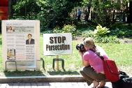 【明慧网2003年9月19日】中午位于费城的宾夕法尼亚大学校园的LOCUST人行道上,来来往往的人群总是川流不息,有刚下课的,也有正要去上课的学生和老师。9月11日那天出奇地好,人行道旁的爱心公园一组静静打坐的人,以及“营救美国公民李祥春”的横幅展板,吸引了过往行人驻足观看,很多人主动签字呼吁释放因传播法轮功真相而在中国被非法关押的李祥春医生。宾夕法尼亚大学校报的记者和摄影师也前来采访报导。