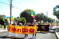 游行活动吸引了上万人驻足观看,学员们带来的洪法及资料也全部发放完毕,有不少人都是自己主动索取。有一位中国男士对学员说:“我以前不知道你们有这么美丽的舞蹈和服装。”
