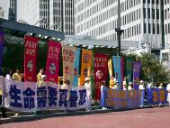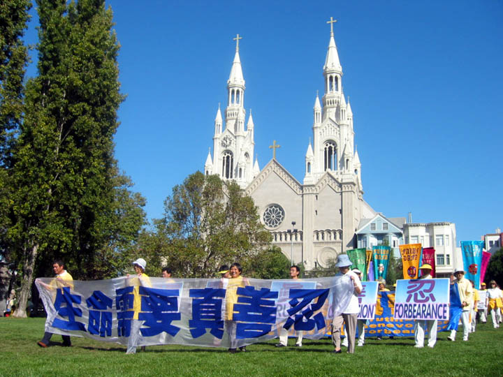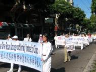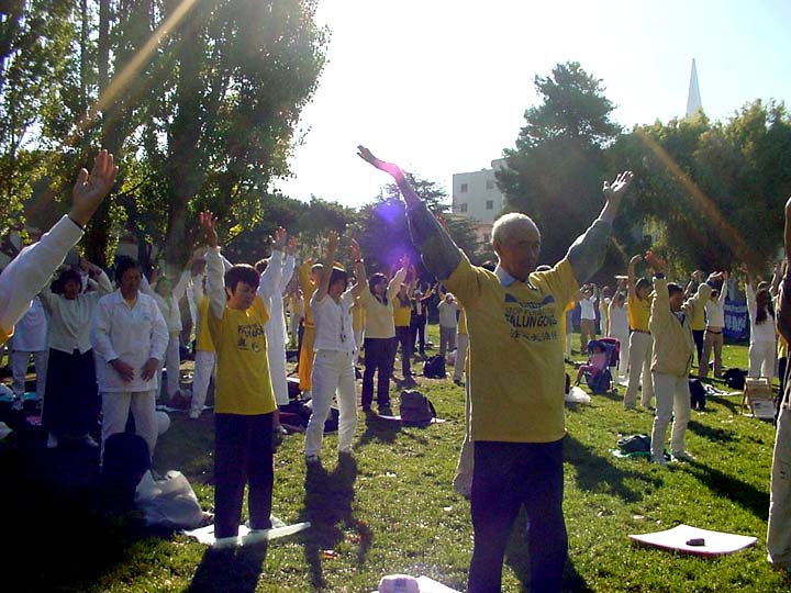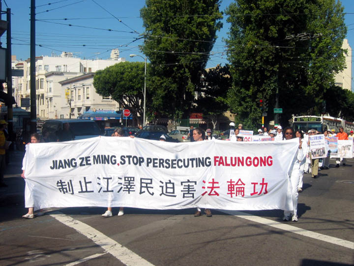 2003年美国旧金山湾区法会即将于9月21日在旧金山召开。9月19日晚上7时,来自美国西部各州的学员聚集在中国驻旧金山领馆前,举行了烛光守夜活动,纪念被江XX集团杀害的同修,抗议虐杀,同时呼吁营救李祥春,声援诉江案。