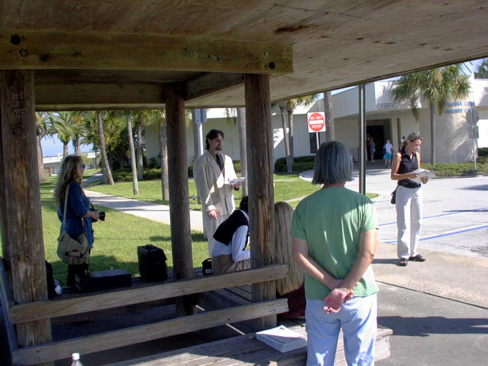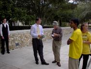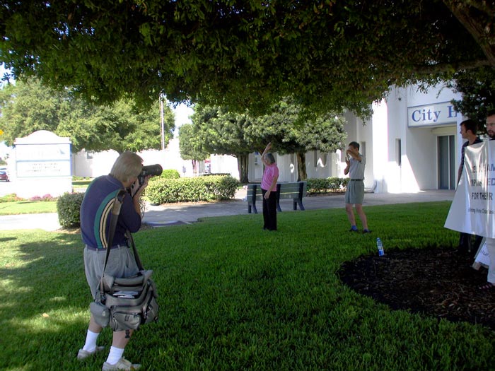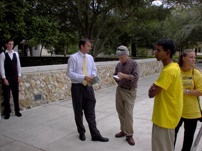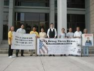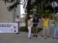 大家在车旅活动中越来越形成一个整体,正念越来越强,智慧也越来越多,效果也越来越好。开始1、2天,参加新闻发布会的媒体少,学员们需要逐一走访。在此后走访的城市中,都有媒体对我们进行采访,有时是多家媒体参加了新闻发布会。临近结束的一天,在佛州首府Tallahassee有4家主要媒体表示对我们很感兴趣,要参加新闻发布会,另外几家媒体也想采访我们。下午在最后一站城市Gainesville,记者对我们进行了近一个小时的采访,第二天在当地最大报纸上刊登了一篇详细报道。