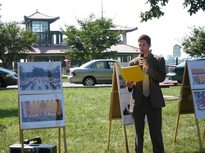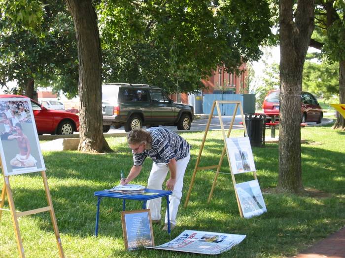 举办图片展和新闻发布会的地点在具有中国宝塔建筑风格的伊凡斯纬尔城来访接待中心。观看的美国人对图片展中,由大法学员组成的“真善忍”巨幅字样和法轮图形的图片留下了深刻印象。伊凡斯纬尔地方长官兰瑞-奥德勒被大法学员真诚的欢迎所感动。随后,大法学员演示了法轮功法,一位大法学员还用笛子演奏了一曲流传中国七千年之久的古乐。当地主要电视台采访了此次活动并在新闻中播出。