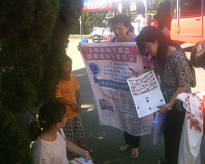 至于大人们,一些学员集体学法、交流,另一些学员则到人群众多的校园中做征签活动。这一天「恰好」是中华邮政举办社区活动,校园中人来人往、携家带眷的,正好为我们讲清真相提供了最佳场域。