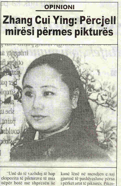 一位与专制集团发生冲突的中国画家章翠英在国际文化中心受到欢迎。在全世界40多个国家的100多个城市举行了巡回画展后,这位澳大利亚籍的中国画家章翠英在地拉那举行了首次个人画展。