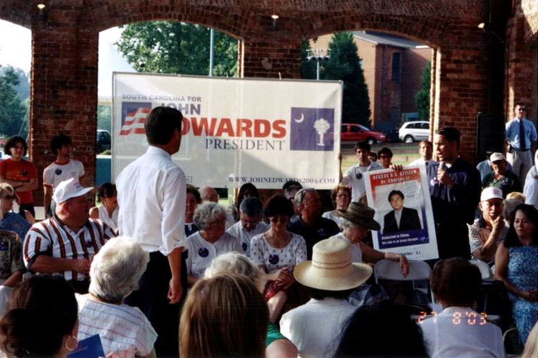 【明慧网2003年9月30日】现在正是美国总统大选紧锣密鼓开始的时候,有很多总统候选人在各州巡回演讲,召开市政厅会议(Town Hall Meeting)等,接近选民。这其实是一个很好的向这些政治人物讲清真相的机会,很容易接近他们面对面的去向他们提问,告诉他们法轮大法所遭受的