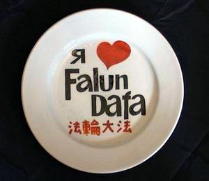 原来,是该电视台的一位美术编辑,得知了法轮功真相后,用心制作了这件工艺品送给我们,以表达对大法和大法弟子的敬意。尤其令我们感动的是,他还在盘子上印上了“法轮大法”四个中文字。