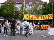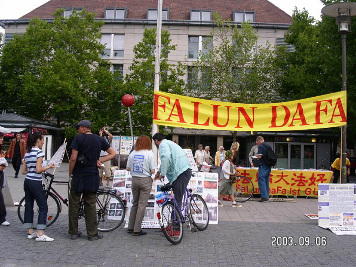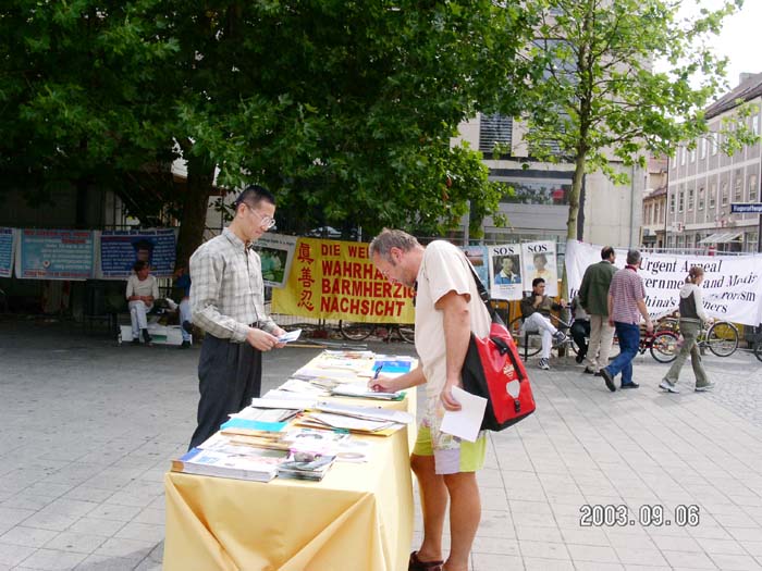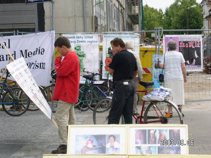 图片展示的活生生的事实令观众十分震惊。很多人看了图片展后主动签名,要求立即停止这场对信仰“真善忍”的法轮功学员的残酷镇压。