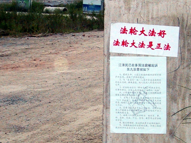 我说:“看来手够狠的了,一天就给打死了?”他说:“把肋叉子都给打折了,肋骨叉到肺子里去了。可是没多长时间,两个管教没事了(又上班了),给打死人的犯人给判了无期(徒刑)。这样一来这个犯人也不干了,就上告说,那管教不让我打我能打吗?后来没办法,上两个月又给那两个管教关了起来。这事影响挺大呀!这院外,连这院里贴的、挂的(法轮大法揭露邪恶方面内容的宣传品)到处都是呀。法轮功啊,打不灭!(这也是他爱重复的话)”