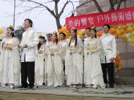 在摆电视与图片讲真相中修炼。星期六早上的芝加哥唐人街是最热闹的。在此摆图片及发传单是一个非常好的机会。当面对不理解大法的人士,有时并不一定能即时破除他们的误解,心里非常的难过和遗憾。找一找自己,是不是自己有哪些做得不好,这次做得不好,下次做好!来唐人街观光的外国旅客也成了我们主要的讲真象的对象之一。许多美国人是第一次听说大法的,当听说大法在中国被迫害,他们都表示很大的同情。一位老太太不断地对我说:“坚持下去,坚持下去,你们是对的,祝你们好运!”冬天的芝加哥,站在雪地里寒风毫不留情地吹袭,仍坚持几个小时的讲真象,真是难得的修炼过程。但在救度众生的紧迫下大家都没有想过推延。摆图片和电视,我们已经坚持几年了。我们的图片和电视会展现大法堂堂正正的一面,不久的将来人们会看到大法伟大的一面!