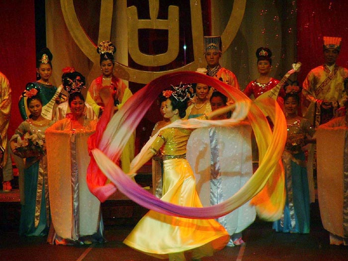 法轮功学员应新!唐!人:电视台的邀请,无偿地与其他中外艺术家一起,参与了这场在多伦多举办的首届全球华人新年晚会的演出。法轮功学员的精彩演出令在场的上千名中西方的观众耳目一新,感受到了中国传统文化的精华和美好,同时也从中看到了法轮功学员平和善良、美好的精神风貌。