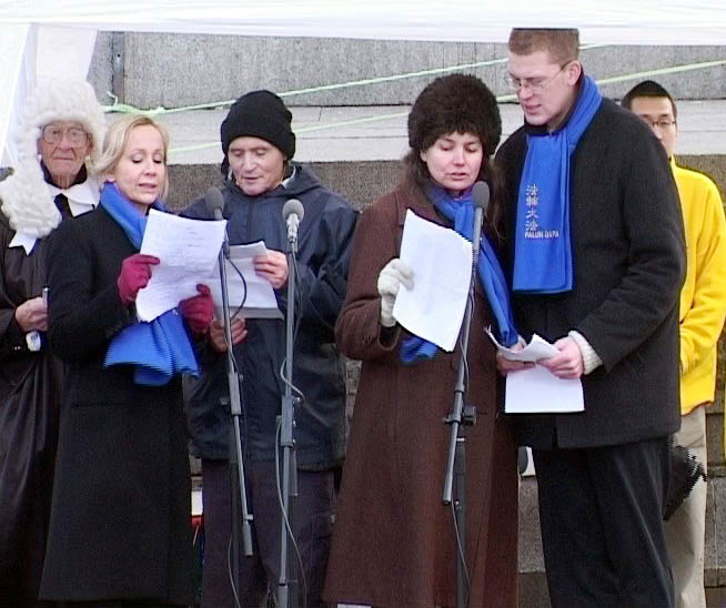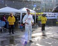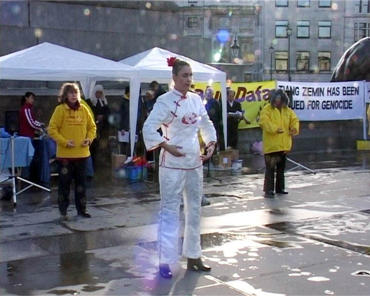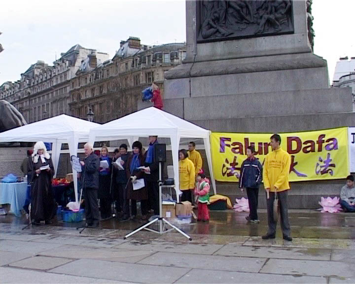 伦敦的模拟审江吸引了许多市民与游人驻足观看。学员还向观众分发介绍法轮功与迫害真象的传单。除了审江外,学员们还进行了功法演示并表演了法轮大法好的舞蹈。向人们展示了法轮大法的美好和1999年7.20前大法在中国洪传的情况。