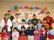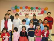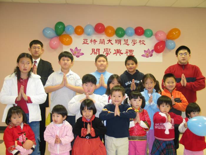 当晚,开学典礼的会场被五彩汽球和莲花装饰地格外漂亮,家长和小朋友们各个兴高彩烈,孩子们穿着鲜艳的节日服装,象过年一样高兴。开学典礼上,首先由校长BECKY YAO介绍亚特兰大明慧学校的建校宗旨和情况,她说:我们明慧学校的办学宗旨是以“真善忍”为本,在实施汉字教学和传统中华文化教育的同时,教导学生以“真善忍”为标准进行道德修养,并学炼简易而有效的法轮功功法,以达到心静体健的状态。