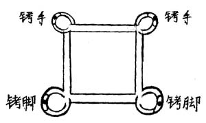 【明慧网2004年1月17日】2000年12月底,被非法关押在金州区看守所的大法弟子集体绝食,抗议恶徒们对大法弟子的的无理。我们不干活,要求无条件释放,这下惊动县局,县公安局范局长到看守所查谁带头绝食,他们把刚从北京绑架回来为法轮功和平上访的两名同修视为重点。这两名同修叫张春花,谭树云。当时来了一帮狱警,有狱医张书全带头,对我们20多名大法弟子大打出手,打人者有张书全、鞠文洋、高迁等恶徒,其它不知姓名。有的恶徒对我们同修拳打脚踢,有的恶徒不停地挥动手中的橡皮板带,狠狠地打在我们同修的脸上、头上。当橡皮板带从脸上抽去时,感觉脸上的皮肉被板带一下撕开了一样,极痛难忍。有的同修被打得眼睛充血,全是红的,什么也看不见。有的脸变了形,鼻青脸肿。有的满身是伤。然后恶警把从北京刚回来的两名同修戴上刑具折磨三天。这种刑具戴上不能躺着,不能吃饭,不能动,就一个姿势。看守所逼大法弟子每天劳动18-20多个小时。打人最狠的是张书全、鞠文洋、高迁,其它不知姓名,指使他们打人的是王文奇副所长。打人的刑具有橡皮板带,还有一种常人刑事犯称为“奔驰”的一种刑具,大约有一尺,方形铁架子,四个角各有一个由厚铁板制作的铐子,上面两个小的是铐手(手铐),下面着地面的两个大的是铐脚(脚铐),如有一个铐子动一动,就会拧着或夹着双手脖子和双脚脖子上的肉皮,极痛难忍。走路时身体弯腰成近90度,撅着屁股,脸朝下,双眼只能看脚前的地面,一步能迈二寸多远,还拧、夹,磨着肉皮非常的痛苦。(见图)