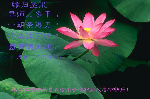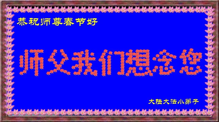“每逢佳节倍思亲”师父,我们想念您。在新春佳节即将来临之际,我们鹤岗市全体大法弟子向伟大的师尊致以最崇高的敬意,敬祝师父新年好、春节愉快!
