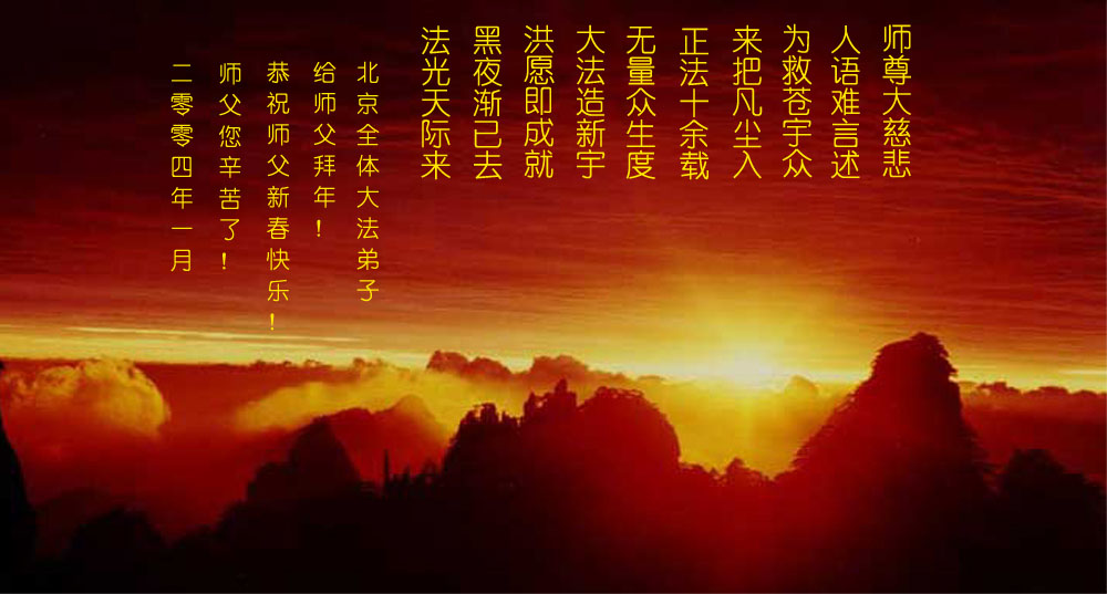 请师父放心,弟子决不会辜负慈悲伟大的师尊用巨大的承受为弟子们开创的这最后的机缘,做好“正法时期大法弟子”应该做好的三件事,不愧对师尊的慈悲苦度,走好、走正这最后的路。