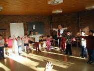 每天中午,老师都安排孩子们到户外去玩耍一小时,午饭前,孩子们自己摆放餐具、排队取饭,然后坐下一起进餐。小弟子们还在老师帮助下编排了节目,将在迎新晚会上背诵《洪吟》、合唱《明慧学校之歌》等。有些提早离开的孩子,恋恋不舍,说是一定要再上明慧学校。