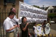 | 纽省法轮功发言人Kay 女士 | 新闻发布会现场 |