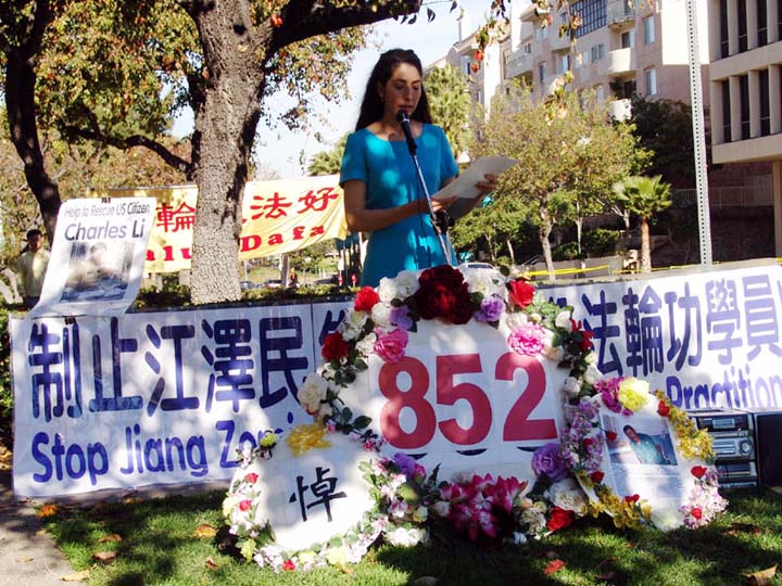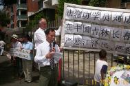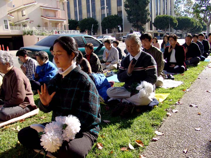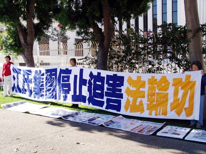惊悉长春学员刘成军被迫害致死,12月31日上午11点,洛杉矶法轮功学员来到中领馆前集会,沉痛悼念刘成军,并强烈要求即查处法办虐杀刘成军的凶手及相关责任人。