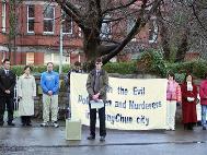 12月30日,爱尔兰法轮功学员在中国驻爱尔兰大使馆前举行新闻发布会,悼念因在电视插播真相片而被折磨致死的长春法轮功学员刘成军,并要求严惩长春恶警及杀人凶手,严惩迫害元凶江泽民。