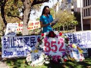 最后她呼吁:“今天,我们全体新加坡法轮功学员和全世界法轮功同修一起,呼吁新加坡政府、媒体和善良的国人,密切关注发生在中国的针对法轮功学员的虐杀,用你的良知、勇气、理性和智慧,一起来支持和声援法轮功学员揭露谎言的正义行为,一起来终止这场迫害和对良知的灭绝。”