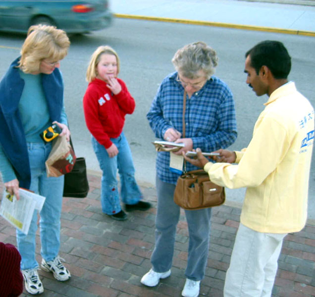 在静坐过程中,不少路人对追悼长春真象电视插播者刘成军及强烈要求惩治杀人犯主谋江泽民内容的标语牌表现出明显的关注,有的市民在骑自行车已路过时,还特意骑回学员们静坐之处,仔细阅读标语牌上写的文字。还有一些行人进而向学员询问为何在此静坐,学员们就此向他们讲述了发生在中国的骇人听闻的国家恐怖主义暴行。更有一位原本对法轮功一无所知并且近期打算去中国旅行的西方人士在听了学员的讲述后,表示去中国后,周围如有人向其谈起有关情况时,他会告诉人们事实真象的。