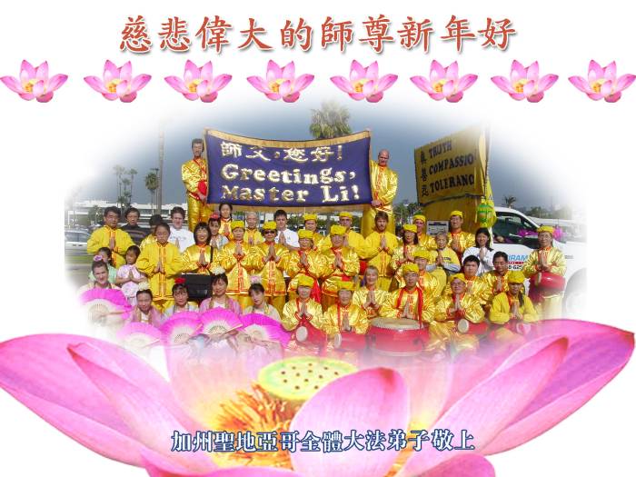 美国加州圣地亚哥全体大法弟子恭祝师尊新年好!