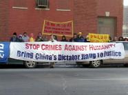 | 芝加哥中领馆前的法轮功学员 | 原告律师在希尔顿旅馆举行记者招待会 |