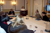 当日下午一点,原告律师Terri Marsh博士,在芝加哥Palmer House希尔顿饭店举行记者招待会。有包括美联社、芝加哥论坛报、世界日报、新!唐!人:电视台等八家中英文媒体参加。记者们对律师及法轮大法信息中心芝加哥发言人等进行了历时二个小时的采访。