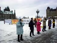 大约有70名法轮功学员在首都渥太华的国会前声援。多伦多和温哥华的法轮功学员与法轮功之友组织也在当地联手召开新闻发布会声援渥太华的活动。
