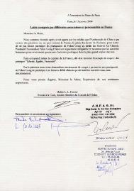 | 致巴黎市长的请愿信及部分支持签名 | 致巴黎市警察局的请愿信及部分支持签名 |