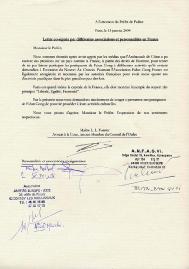 “追查迫害法轮功国际组织”欧洲分部、德国法轮功学员分别还向法国警方、巴黎市政府和中使馆致函。
