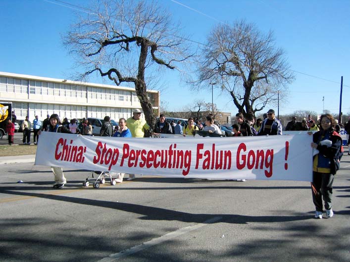 法轮功学员曾经在三年前参加了当时的纪念游行,受到欢迎。本次游行中,学员们打起了“真、善、忍”和“中国停止迫害法轮功”的横幅,在步行的人群中引人注目。