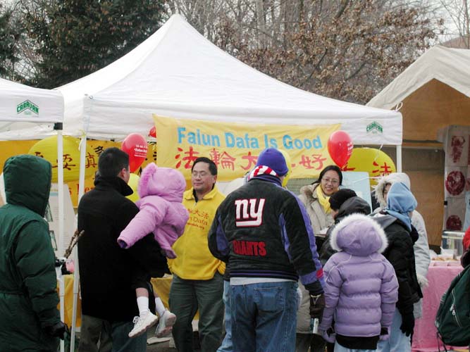 此外,学员们还摆设了自己的摊位,让更多的人了解大法的真相。在整个活动当中,学员们还主动帮助组委会筹备,当人群离开后,许多学员还在严寒和饥饿中帮助组委会拆卸摊位帐篷,他们表示很高兴能够为组委会尽一份力量。