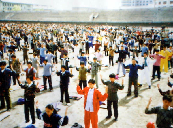 1998年6月29日,甘肃、青海、宁夏三省大法弟子在兰州开三省法会时的集体炼功