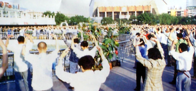 历史图片:法轮功学员大型炼功场面(河北石家庄)(图)