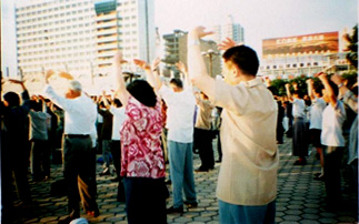 历史图片:甘肃兰州大法弟子在1999年7.20之前集体炼功