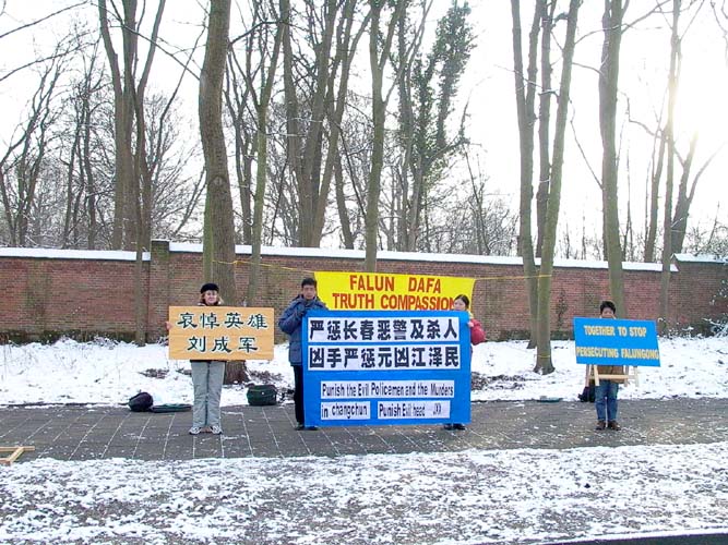 部分荷兰法轮功学员于1月3日在海牙中使馆前,沉痛悼念刘成军,抗议江氏集团对法轮功的进一步迫害,要求严惩杀人凶手。同时也呼吁人们关注100余名与刘成军一起关押在吉林监狱的法轮功学员,避免刘成军的悲剧重演。