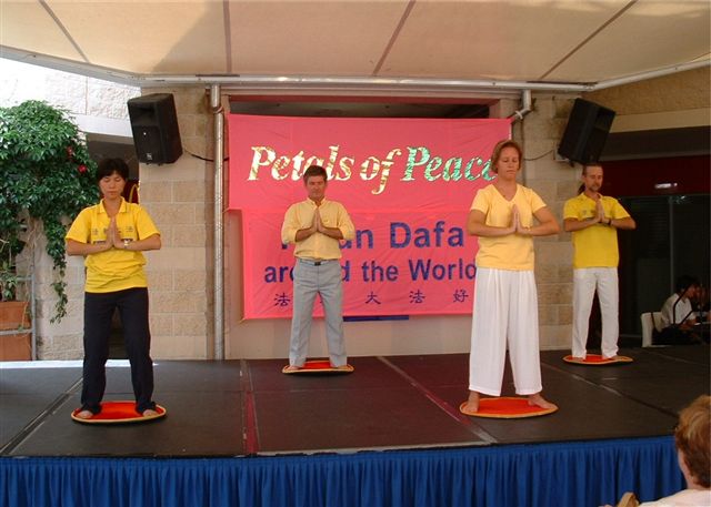 【明慧网2004年1月6日】2004年1月3日,“和平的花瓣”文化节在阳光海岸最大的购物中心阳光广场举行。法轮功学员们表演了美丽的传统中国舞蹈、音乐和法轮功功法,受到了购物者们的欢迎。我们的演出和心声使千百人见证了法轮大法的美好。