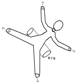 这种酷刑,是用钢筋做成套,固定在铺板上,将受刑者身体错位,手和脚都向斜上方或斜下方拉开,拉到极限锁死,身体成扭曲状,再往身下放木棍、脸盆、罐头瓶等物品,最后将身体完全悬空。然后用小皮锤敲打身体各关节处,直到脱节发黑为止。一段时间后,受刑者的关节全部拉开,痛苦至极。