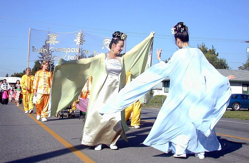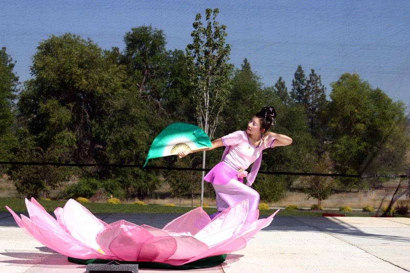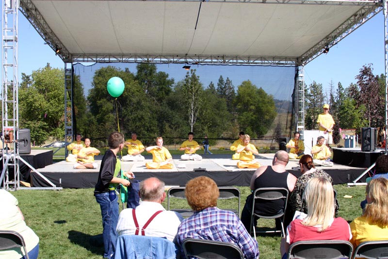 公园内搭起了两个娱乐表演的舞台,一个舞台上演出了几个小时的民族舞蹈。一位法轮大法学员为观众表演了中国传统的“花仙子”舞,博得了热烈的掌声。在舞蹈表演之后,十位学员示范了法轮大法功法,在演示功法的同时,介绍了各套功法的含义,以及法轮大法的背景。
