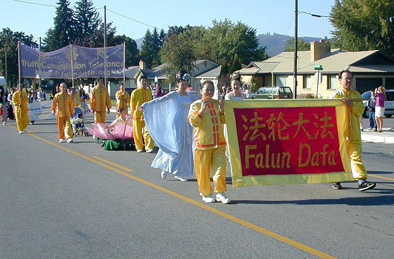 华盛顿州西雅图和普尔曼市的学员来到斯伯肯帮助当地学员组织这次活动,他们一整天都忙于发材料,并和人们讲述法轮大法的真象。在快结束的时候,展位仍有很多人,而其它的展位已经收摊了。