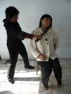恶警尹××看我没说话,就猛的站起来,抓住我用力的打我,还揪住我的头发使劲往下拽,边打边说:这几天,我就看你说的挺多,早就想收拾你。我的头发让她拽掉几缕,身体呈90度弯腰,打累了,又拿个电棍,把我衣服掀开,贴着皮肤,不停的电我的腰部,只听电棍不断的发出响声,她打累了,直喘粗气。来了两个治安员,又让他们猛拽我的头发,头皮痛的钻心,一切痛苦好象都向我袭来,几乎到了极限,直到同修流着泪不断的向她讲让她停止,直到她打不动了,才罢手。几天后我的腰电击的伤痕,半年后仍清晰可见。
