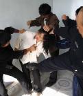 为了镇压这次绝食,劳教女队、劳教局、公安局联合起来动用全部警力,女队院内布满了警察,雇用治安员专门打人。绝食到了第7天,也就是2000年6月8日,镇压升级,医生先给法轮功学员检查心脏、血压,然后实行暴力镇压,我被至少4人群殴。