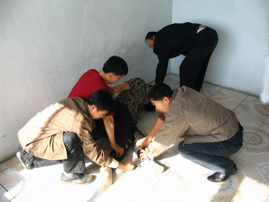 我的双手、双脚被铁链锁在一起,间隔不到1尺长,行走时弯腰不到90度,什么都做不了,生活不能自理,都靠别人照顾,吃饭、上厕所、换衣服都不行。睡觉时一个姿势,骨头、筋、皮肤都抻的非常痛,每次翻身都得准备一会儿,怎么翻,困什么样都很难入睡,勉强睡着又痛醒了。