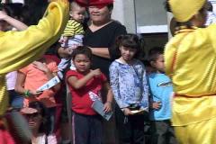 游行队伍经过主席台的时候,主席台上正在介绍着法轮功,“法轮功提高人民身心健康,在六十多个国家洪传……”民众被感动了,学员与路边的民众已经溶为一体,主席台的主持人也激动的向学员双手合十致意,主席台上的裁判们通过他们的目光在告诉我们:“谢谢你们的到来!”