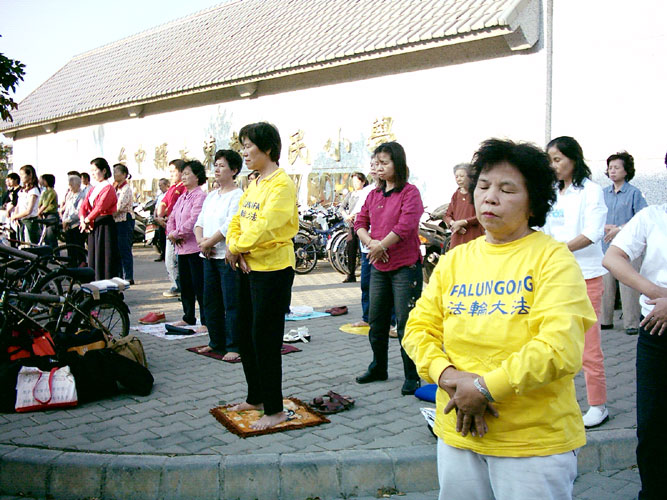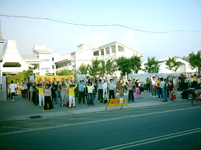 夕阳西下,清风徐徐,运动的人潮及过往行人车辆,无不被东势国小外法轮功学员优美的功法展示,柔和的炼功音乐吸引,而放慢速度,驻足围观。有人很高兴的拿了大法简介,表示要学炼。学员也很乐意将大法的美好介绍给人们,完全不收取报酬的,因为他们是法轮功的受益者,身心健康、家庭和睦、道德提升、了解人生真谛……数不尽的好处,法轮功真是利己利人的好功法!就在人们的赞叹声中,结束了一日学法交流的活动。