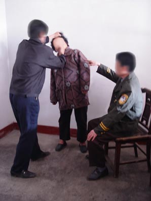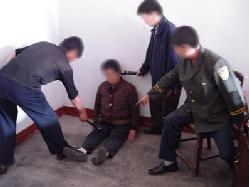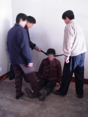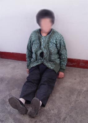 ![]() 时值寒冬季节,强迫老年大法弟子整天坐在冰冷的水泥地上,两腿并拢,双手放下,上身挺直,稍微一动,邪恶之徒就会上前拳打脚踢 | ![]() 强迫大法弟子整天坐在冰冷的水泥地上,用电棍电击大法弟子双耳、眉心、头部,颈部、胸部、四肢及下身。同时又穿着皮鞋使劲碾大法弟子的脚踝骨,踩住老年女大法弟子的头发往墙上撞,扇耳光 |