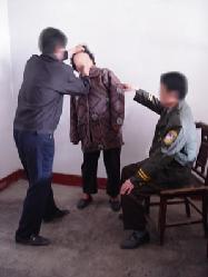 ![]() 用高压电棍电击大法弟子小腹部位。 | ![]() 脱下皮鞋,用力猛抽女大法弟子的脸,直到打得满脸是血,脸部严重变形 |